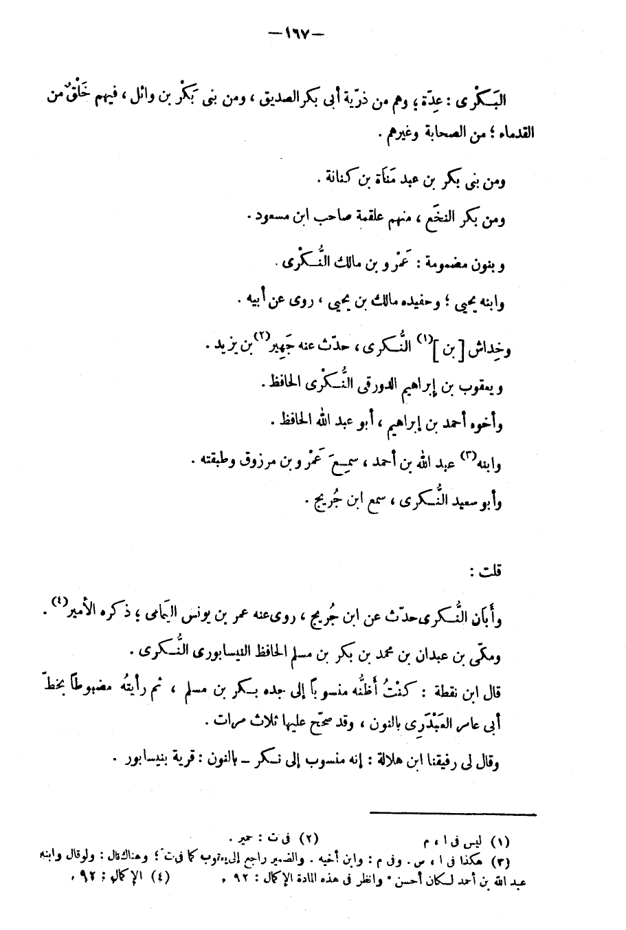 قال ابن نقطة: كنْتُ أظُنُّه منسوباً إلى جده بكر بن مسلم، ثم رأيتُه مضبوطاً بخطّ