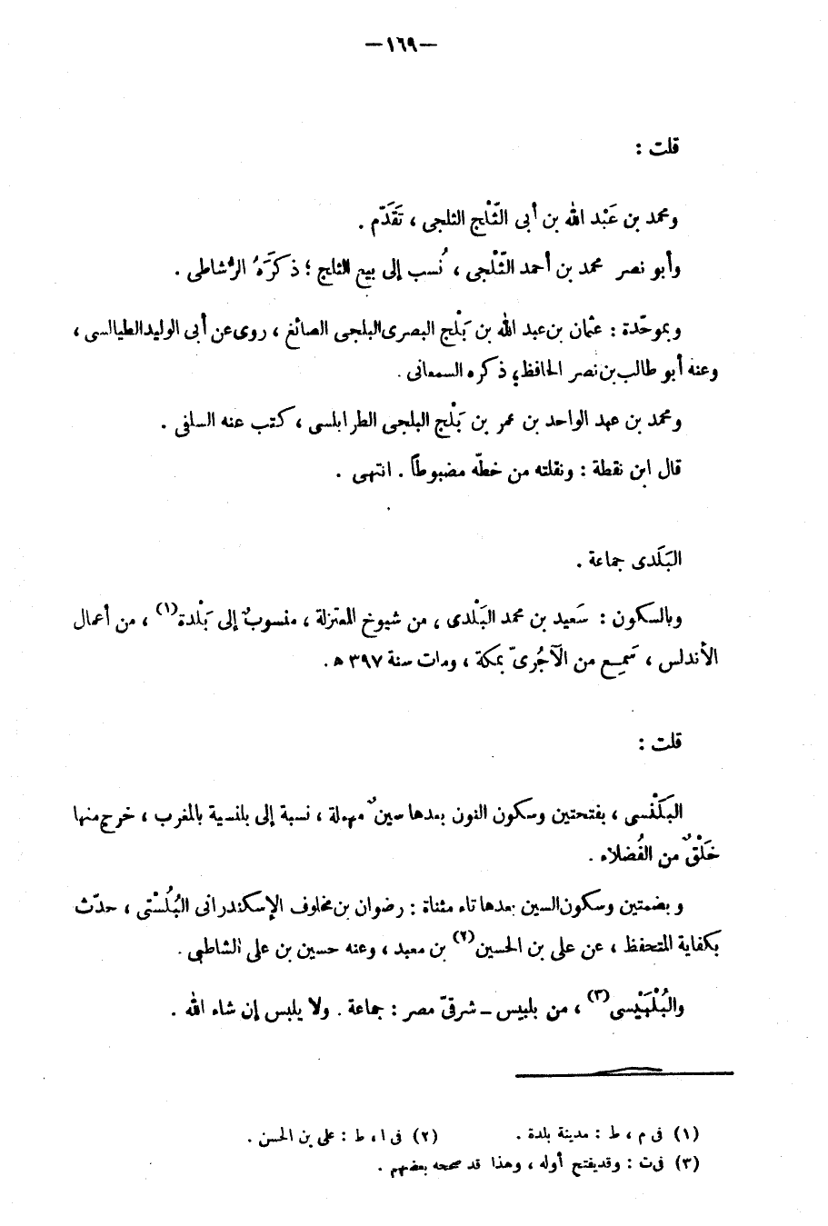 قلت: البَلَنْسي، بفتحتين وسكون النون بعدها سينٌ مهملة، نسبة إلى بلنسية بالمغرب، خرج منها خَلْقٌ من الفُضلاء.