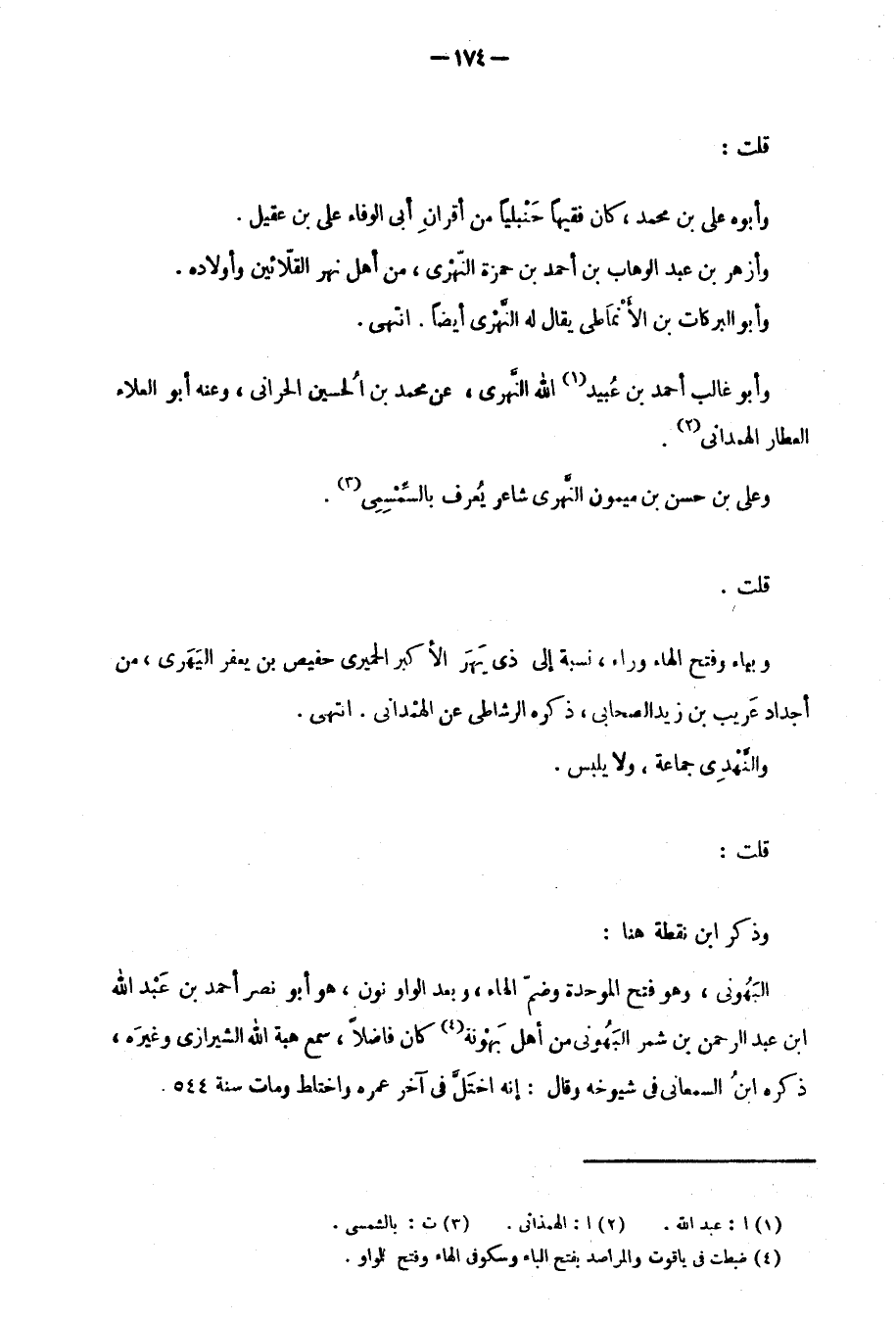 البَهْوني، وهو فتح وضمّ الهاء، وبعد الواو نون، هو أبو نصر أحمد بن عَبْد الله بن عبد الرحمن بن شمر البَهْوَني من أهل بَهْوَنة كان فاضلاً، سمع هبة الله الشيرازي وغيرَه، ذكره ابنُ السمعاني في شيوخه وقال: إنه اختّلَّ في آخر عمره واختلط ومات سنة 544.