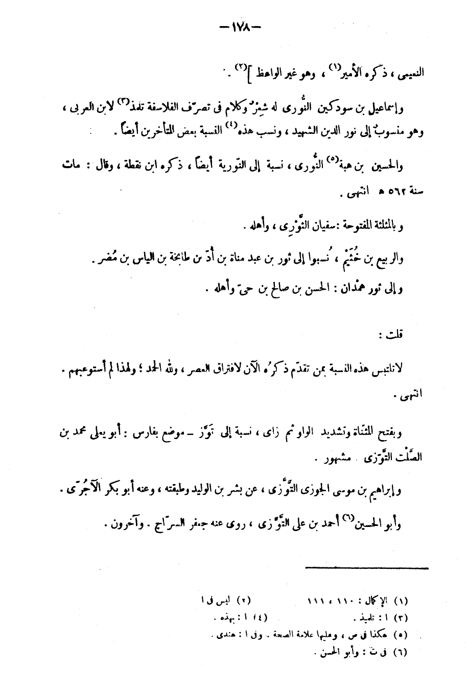 والحسين بن هبة النُّوري، نسبة إلى النُّورية أيضاً، ذكره ابن نقطة، وقال: مات سنة 562هـ انتهى.