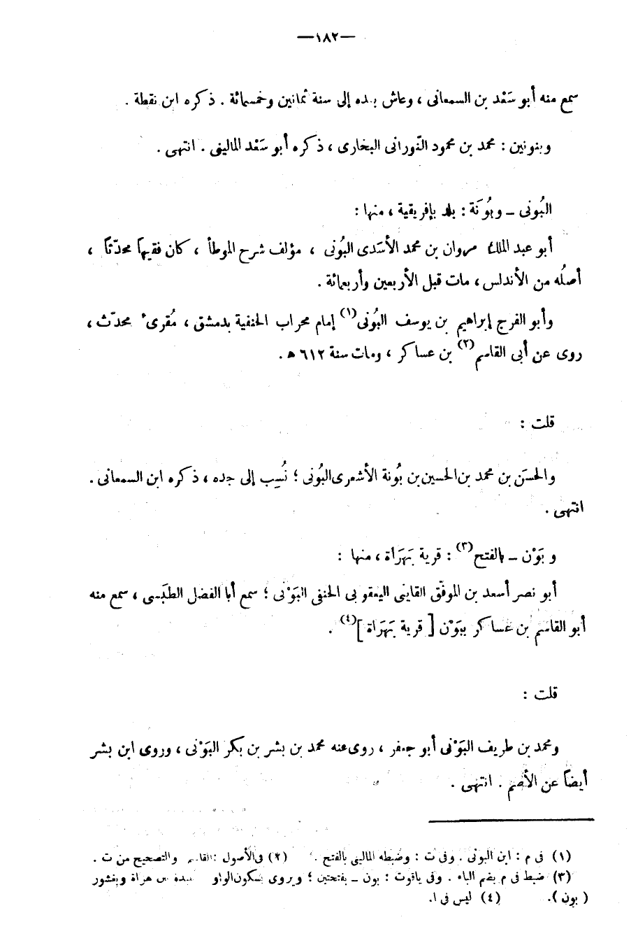 وبنونين: محمد بن محمود النّوراني البخاري، ذكره أبو سَعْد الماليني. انتهى.