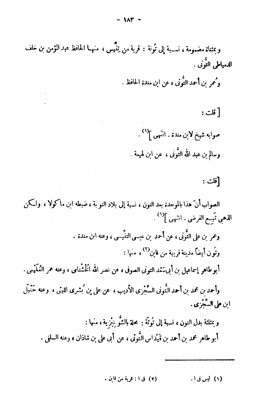 وبمثناة مضمومة، نسبة إلى تُونة: قرية من تِنِّيس، منها الحافظ عبد المؤمن بن خلف الدمياطي التُّوني.