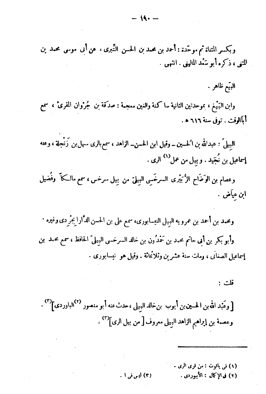 قلت: وعَبْد الله بن الحسين بن أيوب بن خالد البِيلي، حدث عنه أبو منصور الباوردي.