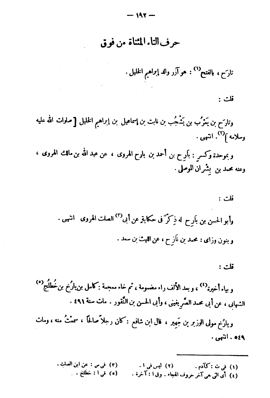 قلت: وتارَح بن يَعْرُب بن يَشْجُب بن نابت بن إسماعيل بن إبراهيم الخليل صلوات الله عليه وسلامه. انتهى.