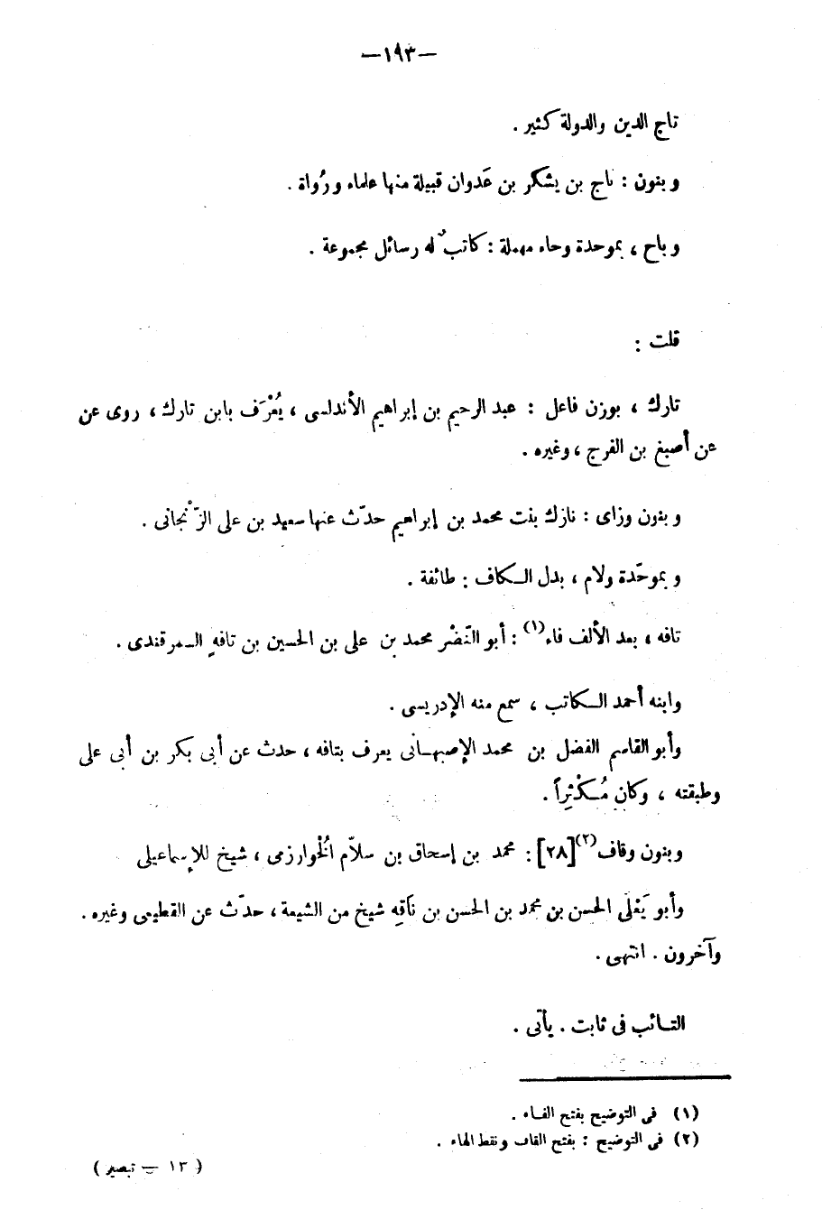 قلت: تارك، بوزن فاعل: عبد الرحيم بن إبراهيم الأندلسي، يُعْرَف بابن تارك، روى عن أصبغ بن الفرج، وغيره.