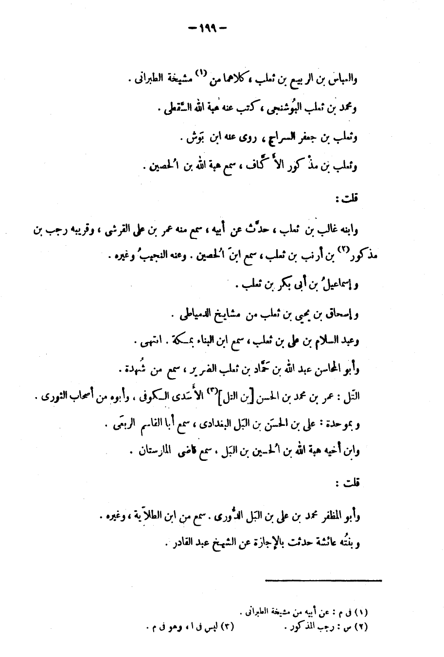 قلت: وابنه غالب بن ثعلب، حدَّث عن أبيه، سمع منه عمر بن علي القرشي، وقريبه رجب بن مذكور بن أرنب بن ثعلب، سمع ابنَ الحُصين. وعنه النجيبُ وغيره.