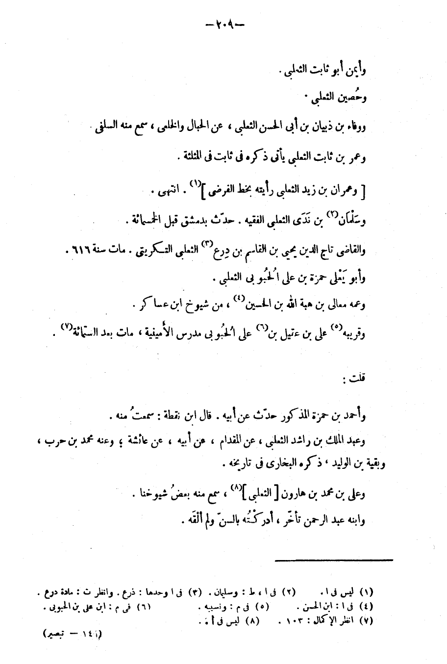 وعمر بن ثابت الثعلبي يأتي ذكره فِي ثابت فِي المثلثة.