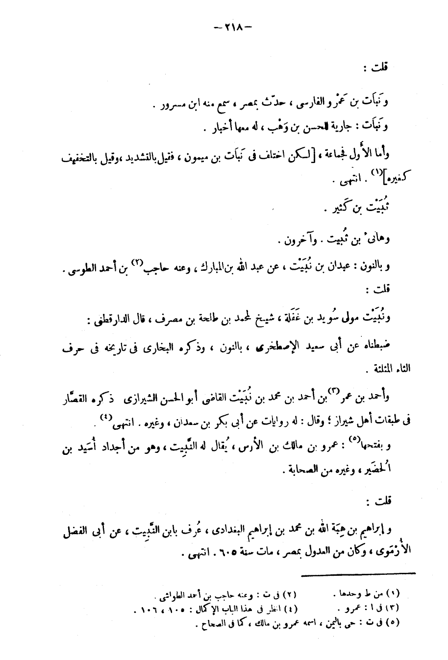 وبالنون: عبدان بن نُبَيت، عن عبد الله بن المبارك، وعنه حاجب بن أحمد الطوسي.