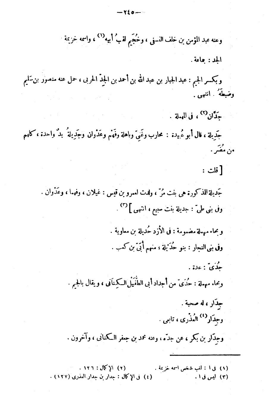 وبكسر الجيم: عبد الجبار بن عبد الله بن أحمد بن الجدِّ الحربي، حمل عنه منصور بن سَليم وضبطَهُ. انتهى.