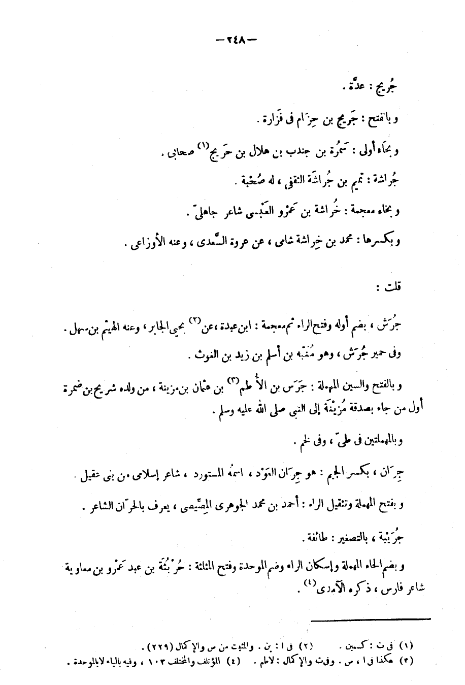 وبضم الحاء المهملة وإسكان الراء وضم الموحدة وفتح المثلثة: حُرْبُثَة بن عبد عَمْرو بن معاوية شاعر فارس، ذكره الآمدي.