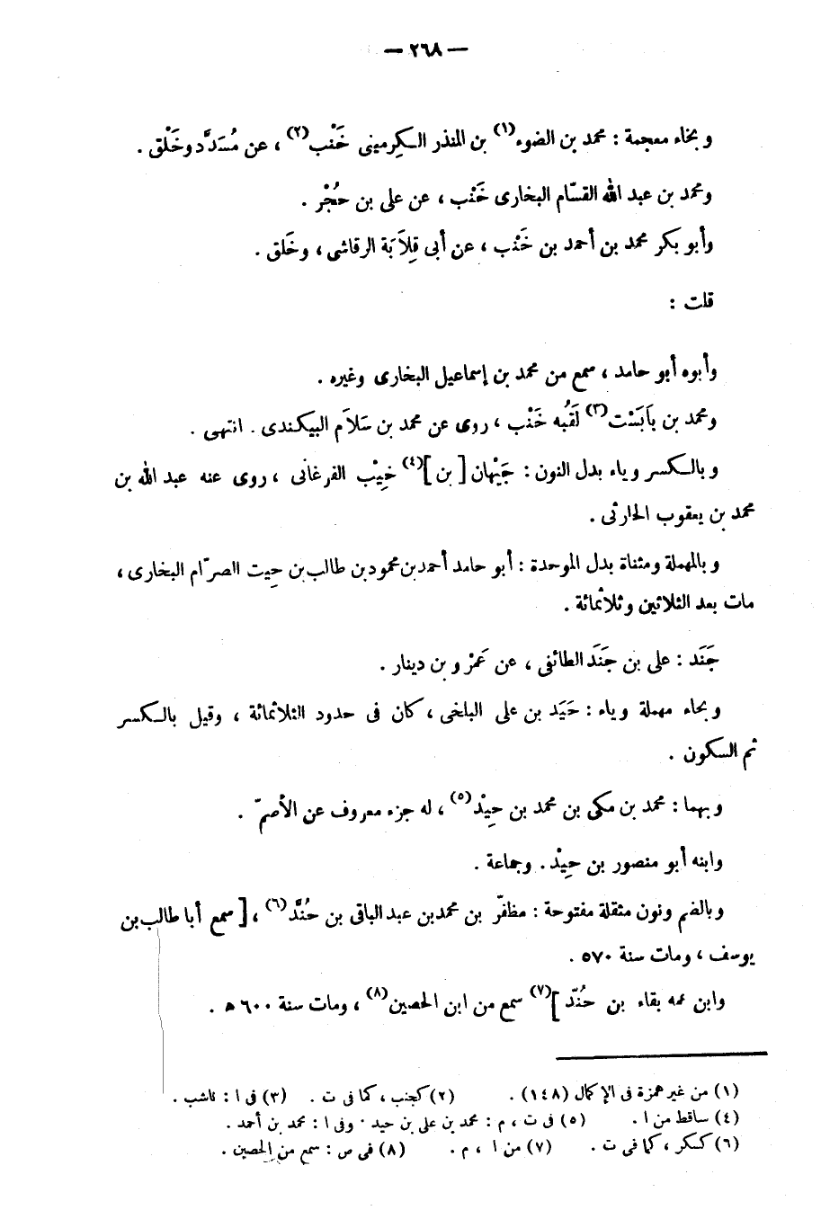 ومحمد بن بَابَسْت لَقُبه خَنْب، روى عن محمد بن سَلاَم البيكندي. انتهى.
