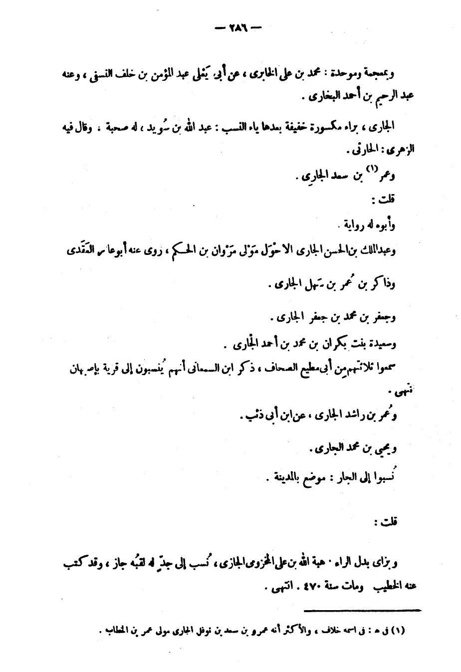 قلت: وبزاي بدل الراء هبة الله بن علي المخزومي، نُسب إلى جدٍّ له لقبُه جاز، وقد كتب عنه الخطيب ومات سنة 470 انتهى.