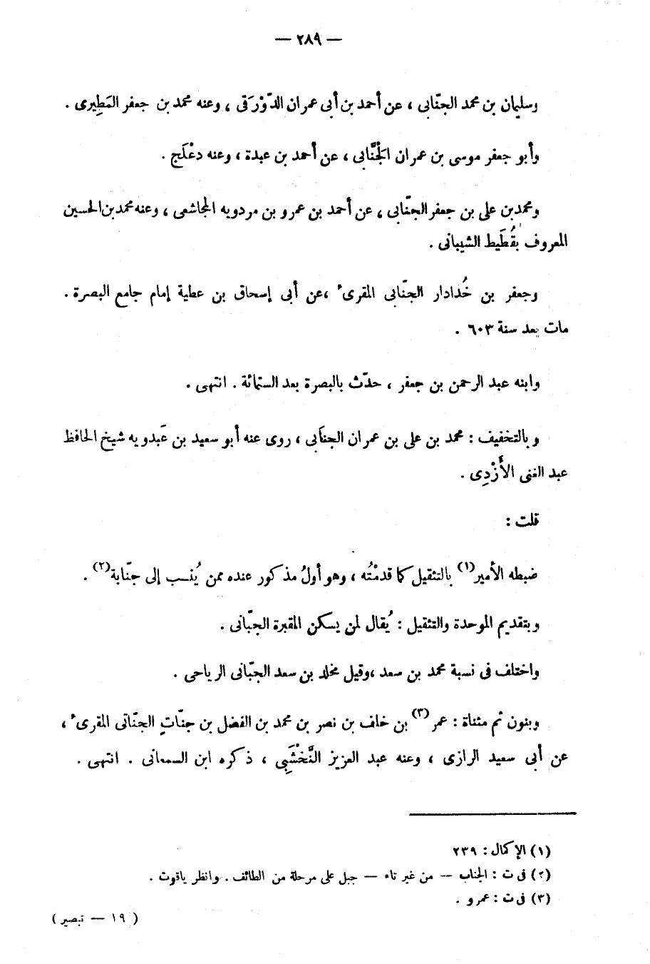 قلت: ضبطه الأمير بالتثقيل كما قدمْتُه، وهو أولُ مذكور عنده ممن يُنسب إلى جنّاية.