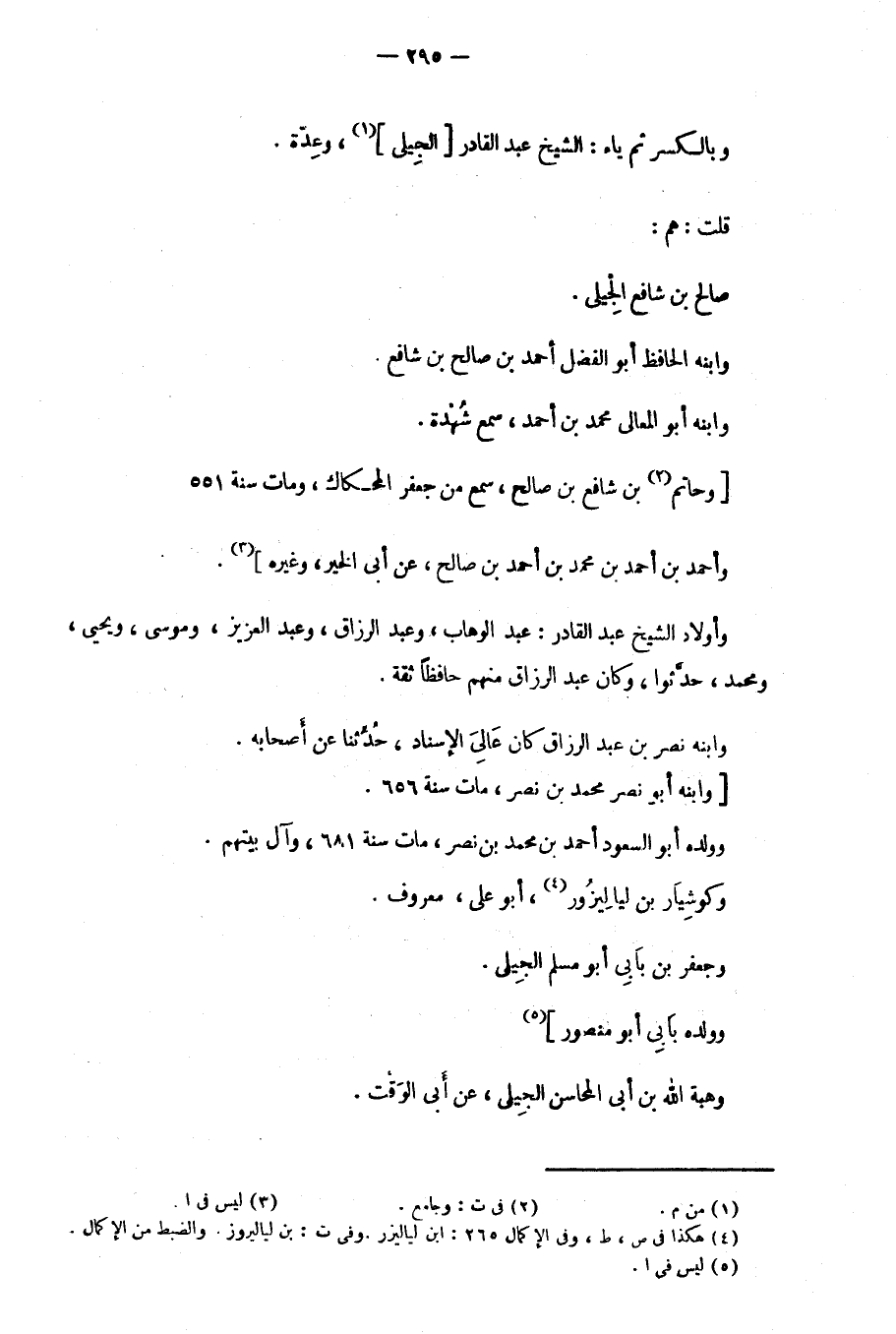 وأولاد الشيخ عبد القادر: عبد الوهاب، وعبد الرزاق، وعبد العزيز، وموسى، ويحيى، ومحمد، حدَّثوا، وكان عبد الرزاق منهم حافظاً ثقة.