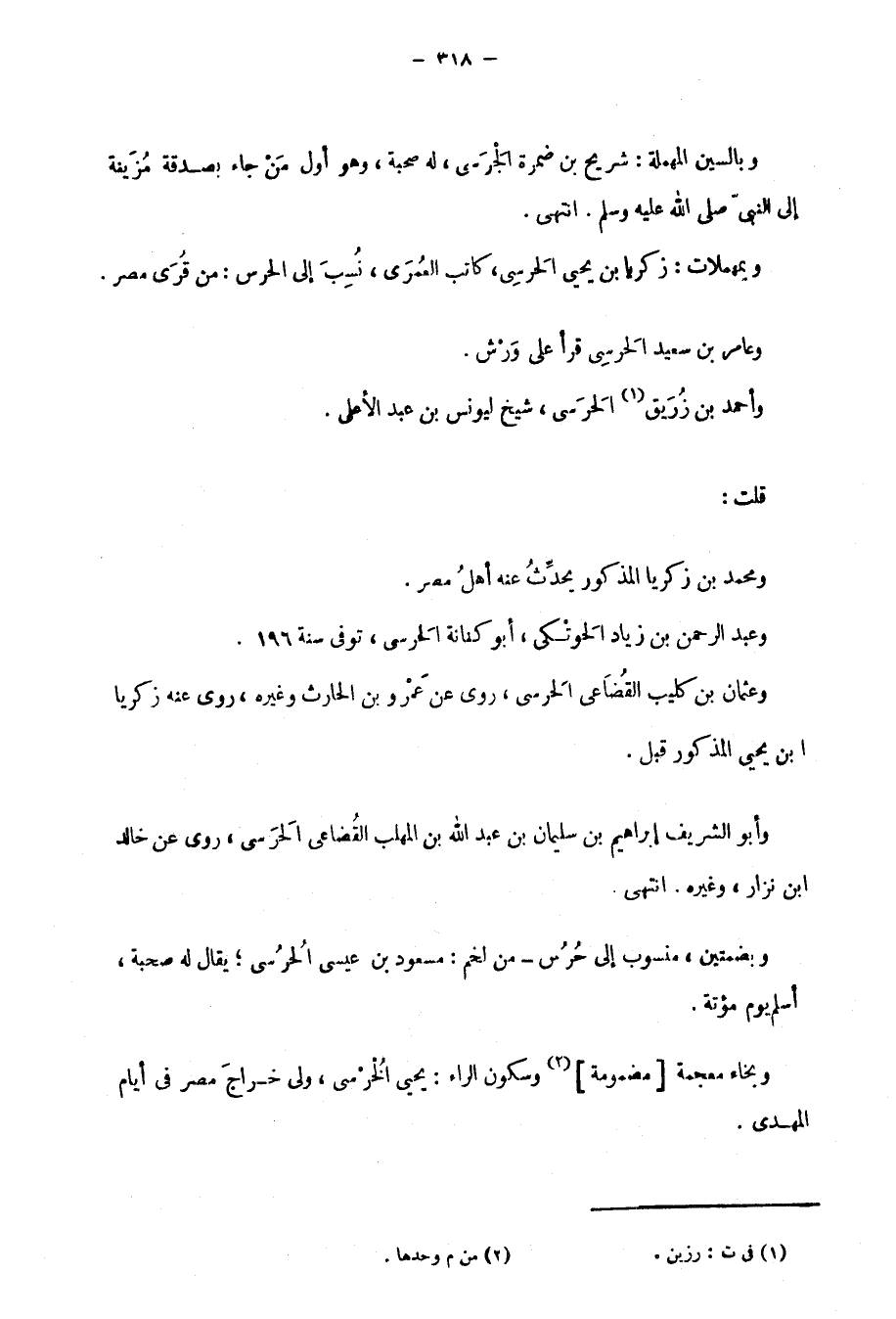 وبمهملات: زكريا بن يحيى الحَرسِي، كاتب العُمَري، نُسِبَ إِلَى الحرس: من قُرَى مصر.