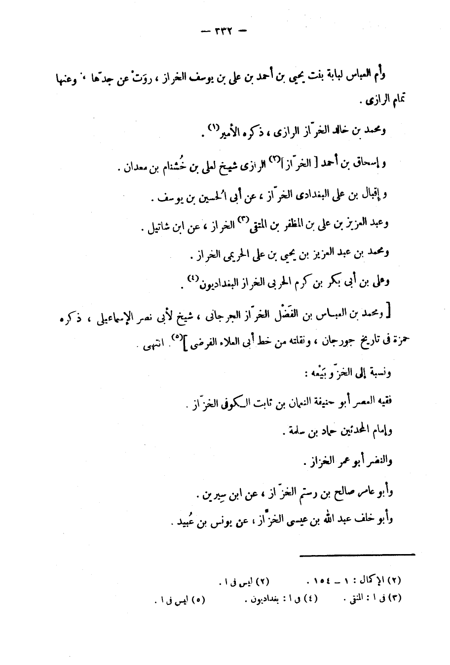 ومحمد بن العباس بن الفَضل الخرّاز الجرجاني، شيخ لأبي نصر إسماعيلي، ذكره حمزة في تاريخ جورجان، ونقلته من خط أبي العلاء الفرضي. انتهى.