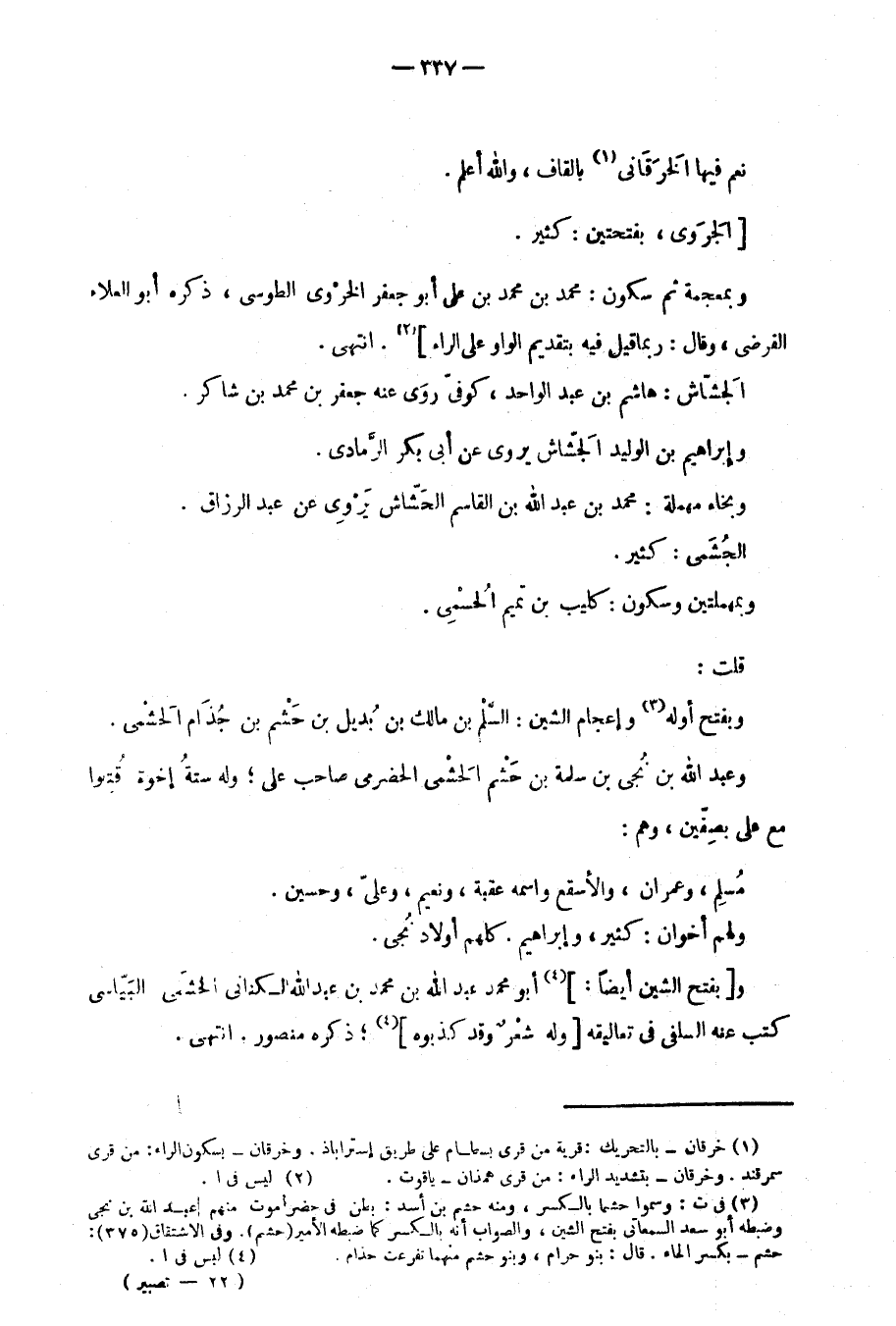 وبخاء مهملة: محمد بن عبد الله بن القاسم الحْشّاش يَرْوِي عن عبد الرزاق.