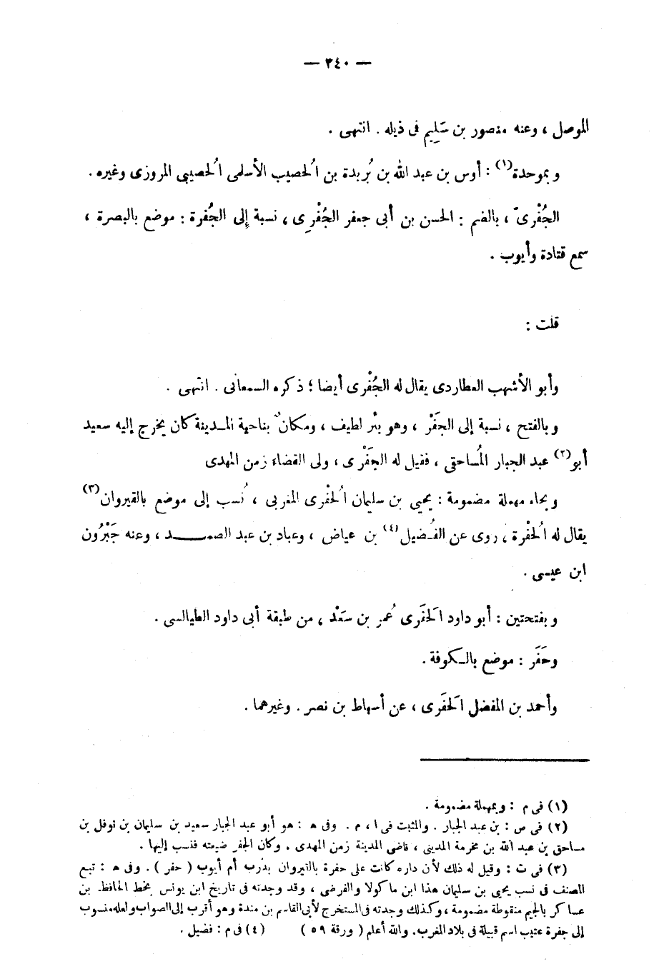 وبحاء مهملة مضمومة: يحي بن سليمان الحُفْري المغربي، نُسب إلى موضع بالقيروان يقال له الحُفْرة، روى عن الفُضيل بن غياض، وعباد بن الصمد، وعنه جَبْرُون ابن عيسى.