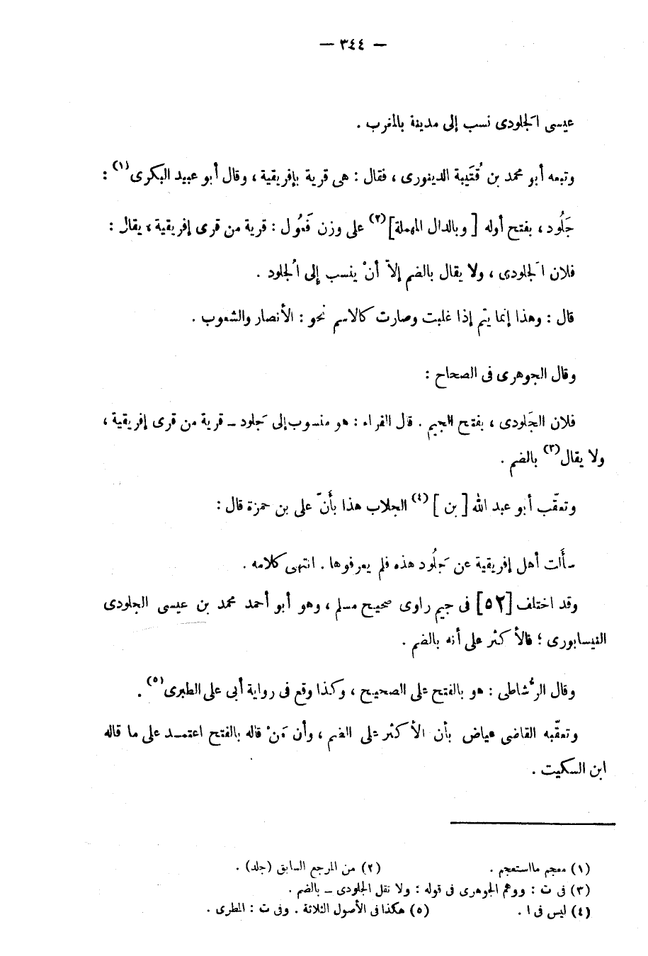 وقد اختلف في جيم راوي صحيح مسلم، وهو أبو أحمد بن عيسى الجلودي النيسابوري؛ فالأكثر عَلَى أنه بالضم.