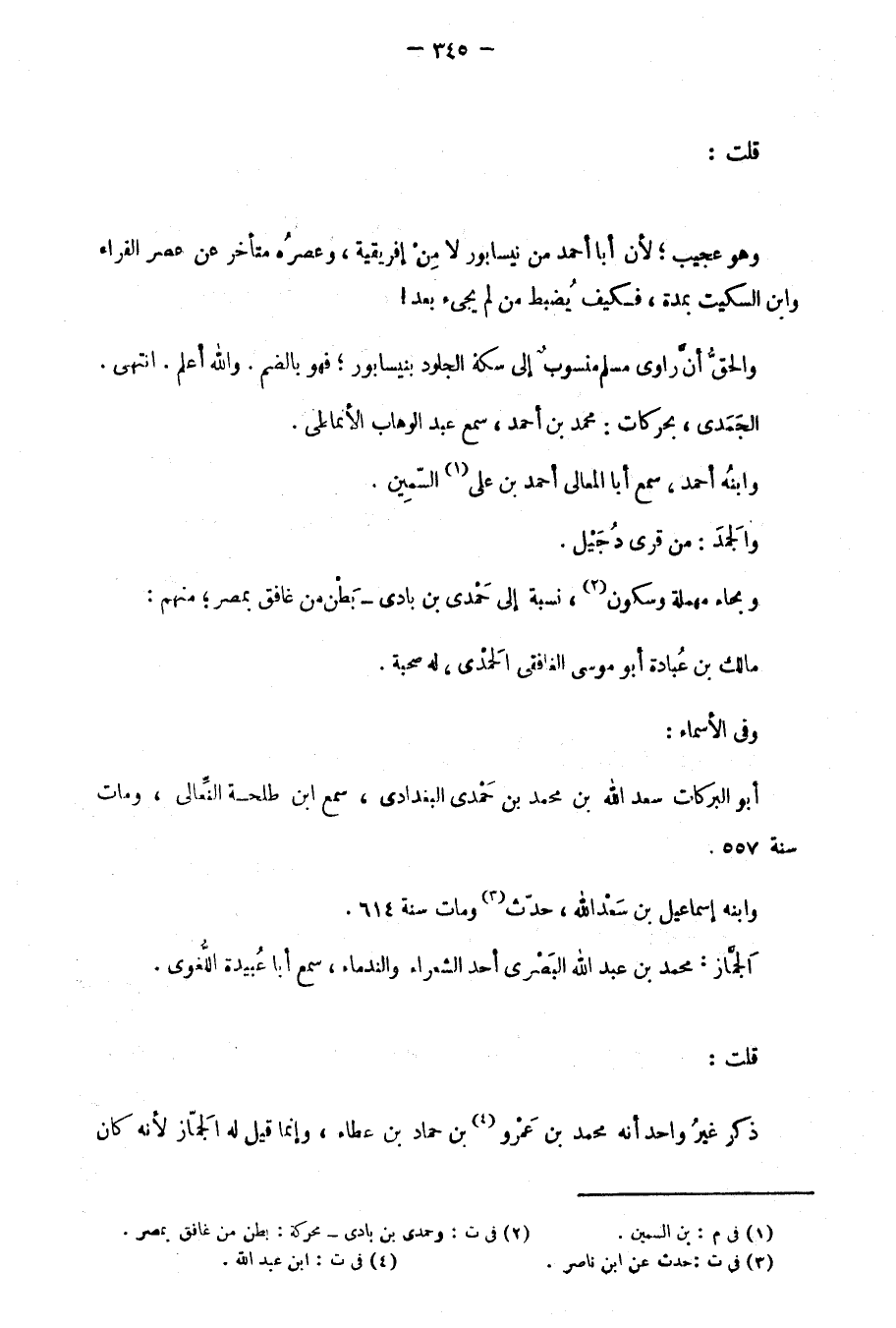 قلت: وهو عجيب، لأن أبا أحمد من نيسابور لا من إفريقية، وعصرهُ متأخر عن عصر الفراء وابن السكيت بمدة، فكيف يُضبط من لم يجئ بعد!