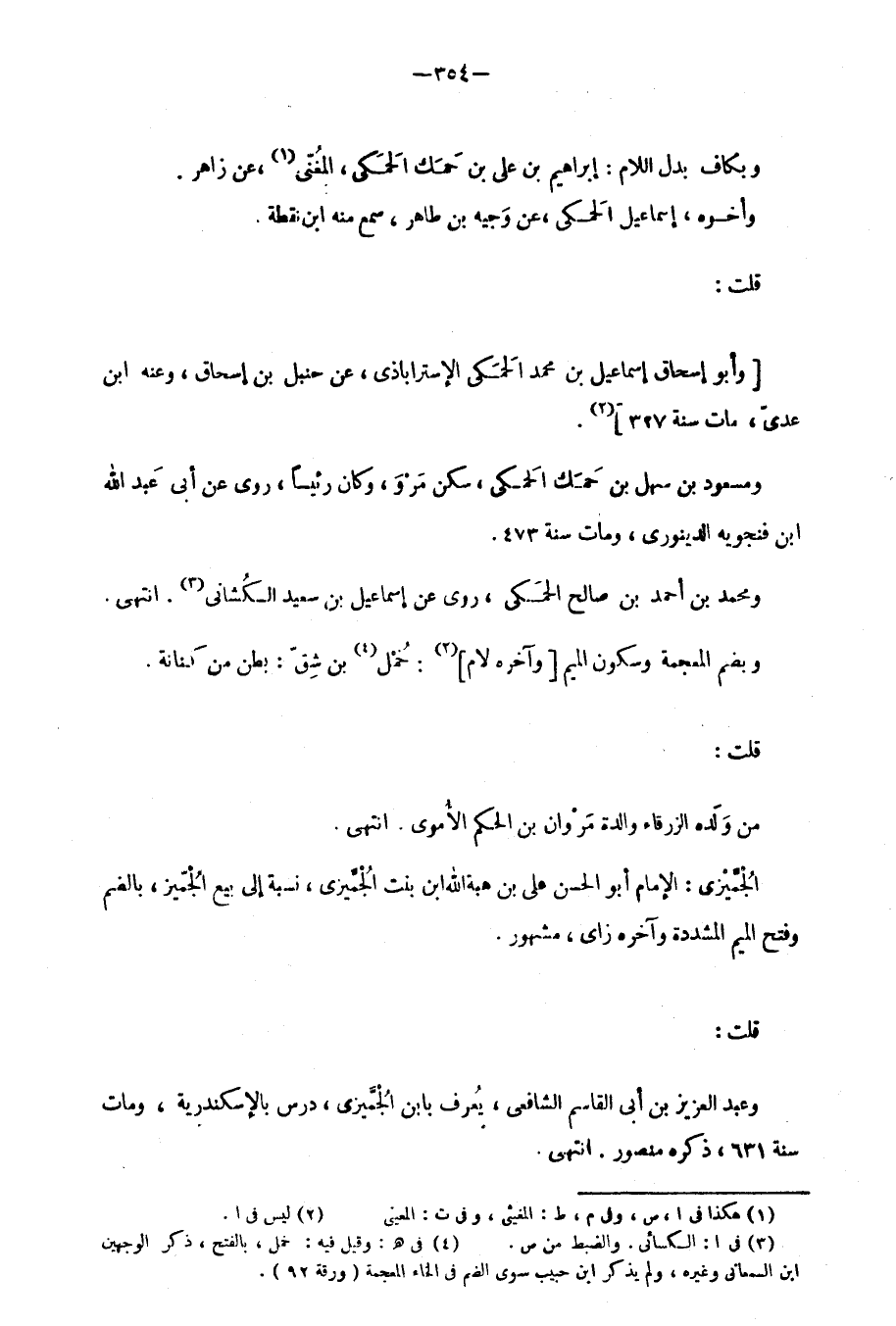 قلت: من وَلَده الزرقاء والدة مَرْوان بن الحكم الأموي. انتهى.