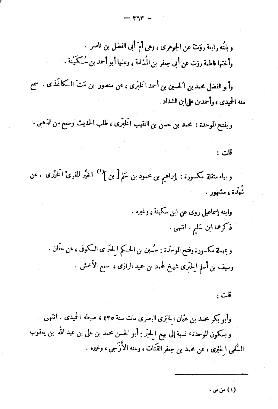 قلت: وأبو بكر محمد بن عثمان الحبَري البصري مات سنة 435، ضبطه الحميدي. انتهى