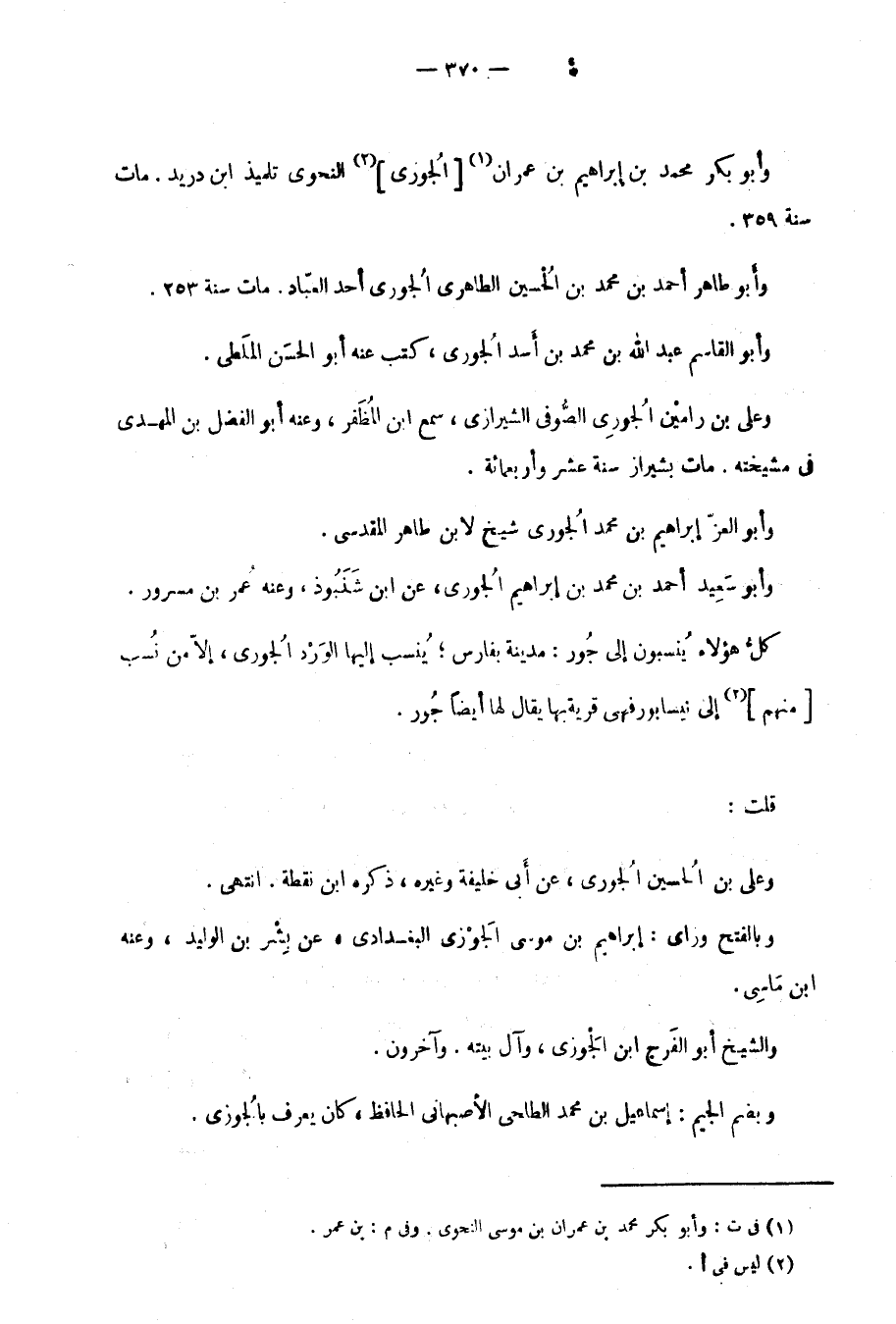 وأبو بكر محمد بن إبراهيم بن عمران الجُوري النحوي تلميذ ابن دريد مات سنة 359.