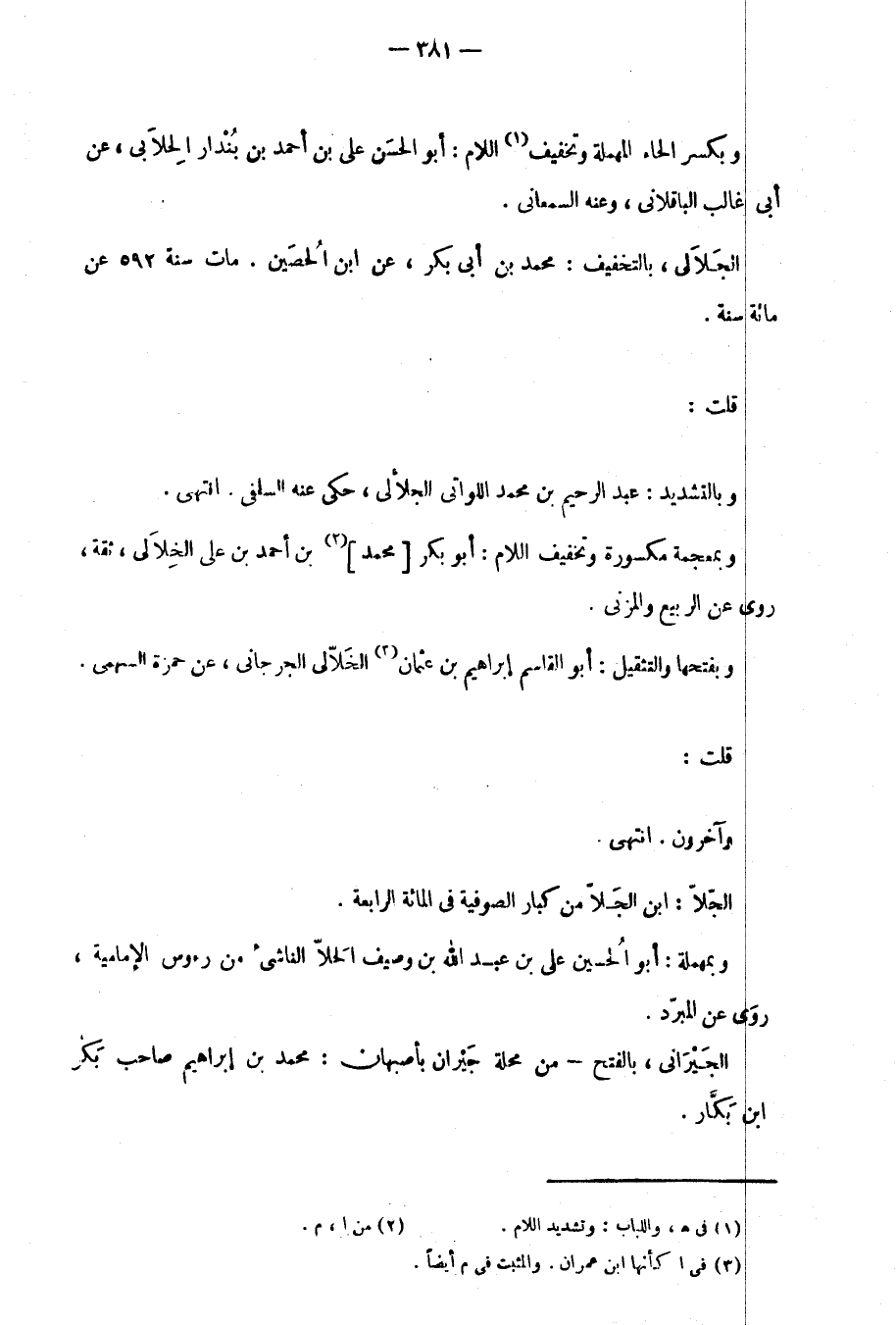 قلت: وبالتشديد: عبد الرحيم بن محمد اللواتي الجلالي، حكى عنه السلفي. انتهى.