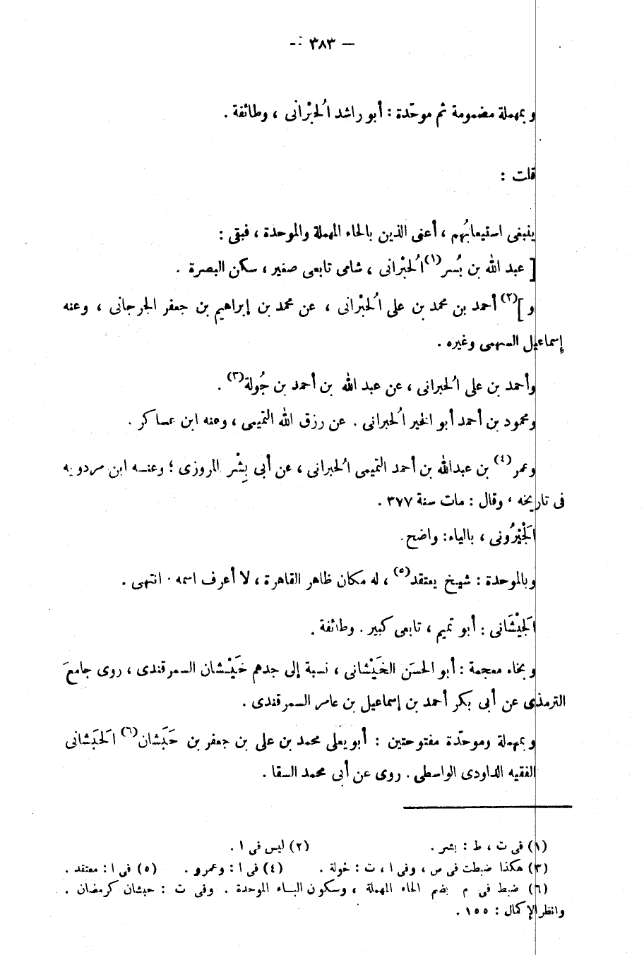وبمهملة مضمومة ثم موحّدة: أبو راشد الحُبْراني، وطائفة.