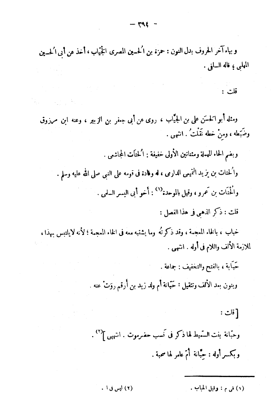 وبياء آخر الحروف بدل النون: حمزة بن الحُسين المصري الْجَيّاب، أخذ عن أبي الحُسين المهلبي، قاله السلفي.