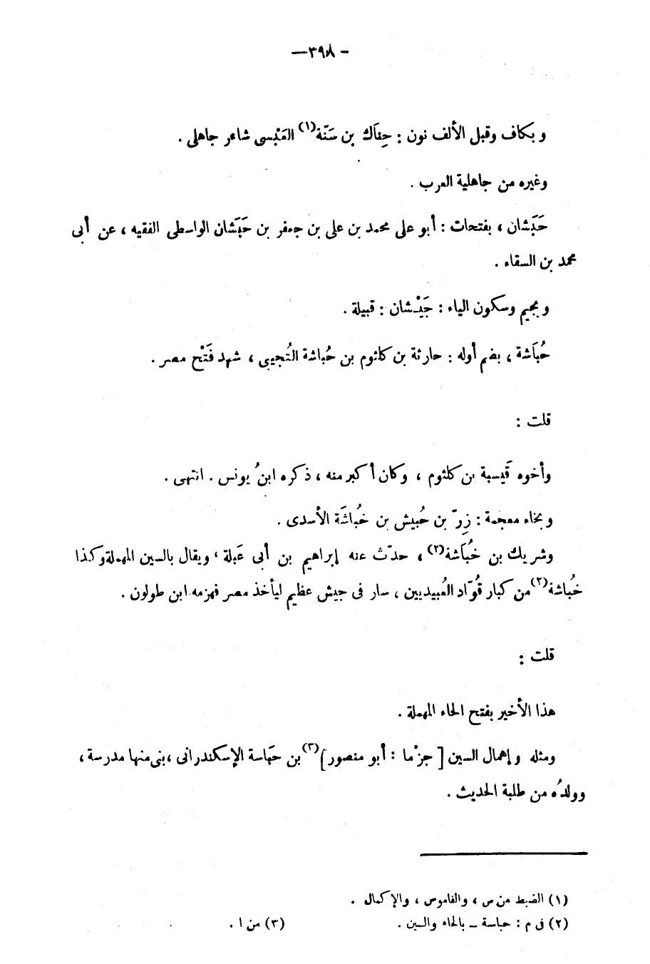 ومثله وإهمال السين جزْمًا: أبو منصور بن حبَاسة الإسكندراني، بني منها مدرسة، وولدُه من طلبة الحديث.