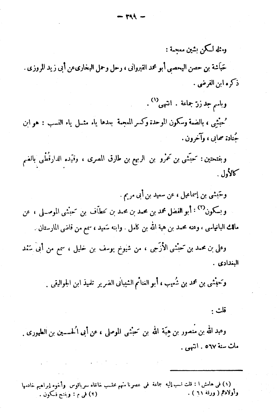 وحَبْشي بن محمد بن شُعيب، أبو الغنائم الشيباني الضرير تلميذ ابن الجواليقي.