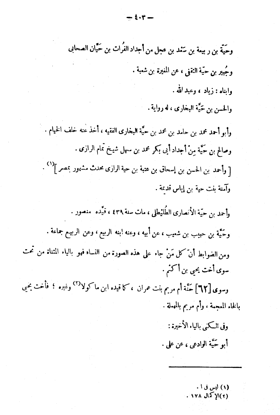 وسوى حَنَّة مريم بنت عمران، كما قيده ابن ماكولا وغيرهن فأخت يحيى بالخاء المعجمة، وأم مريم بالمهملة.