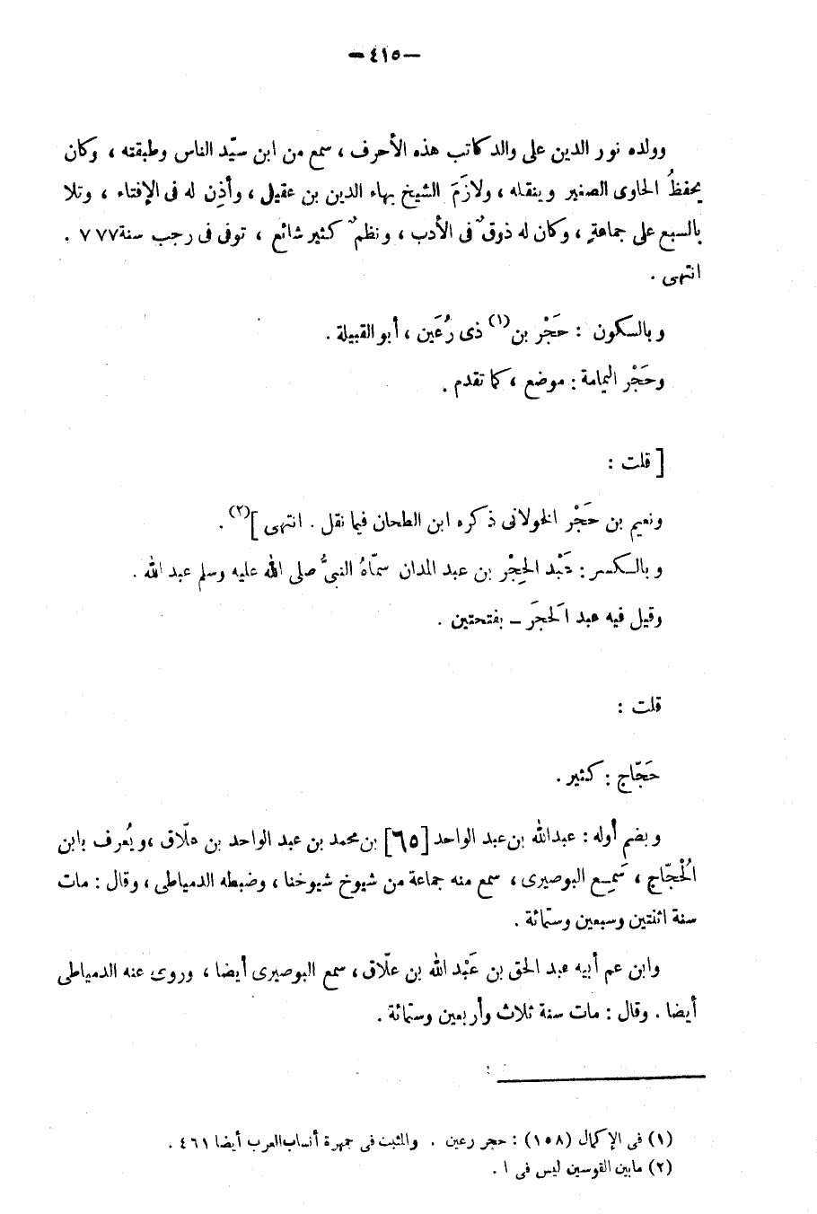 وبضم أوله: عبد الله بن عبد الواحد بن محمد بن عبد الواحد بن علاّق، ويُعرف بابن الْحُجّاج، سَمِع البوصيري، سمع منه جماعة من شيوخ شيوخنا، وضبطه الدمياطي، وقال: مات سنة اثنتين وسبعين وستمِئَة.