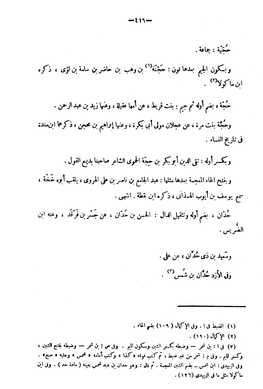 وبسكون الجيم بعدها نون: حَجْنَة بن وهب بن حاضر بن سامة بن لؤي، ذكره ابن ماكولا.