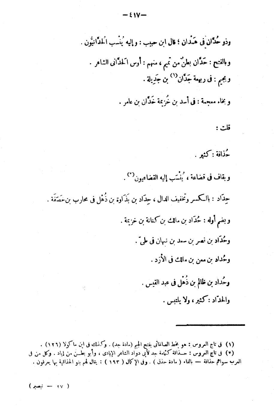 حِدّاد: بالكسر وتخفيف الدال، حِدَاد بن بَذَاوة بن ذُهْل في محارب بن خَصَفَة.