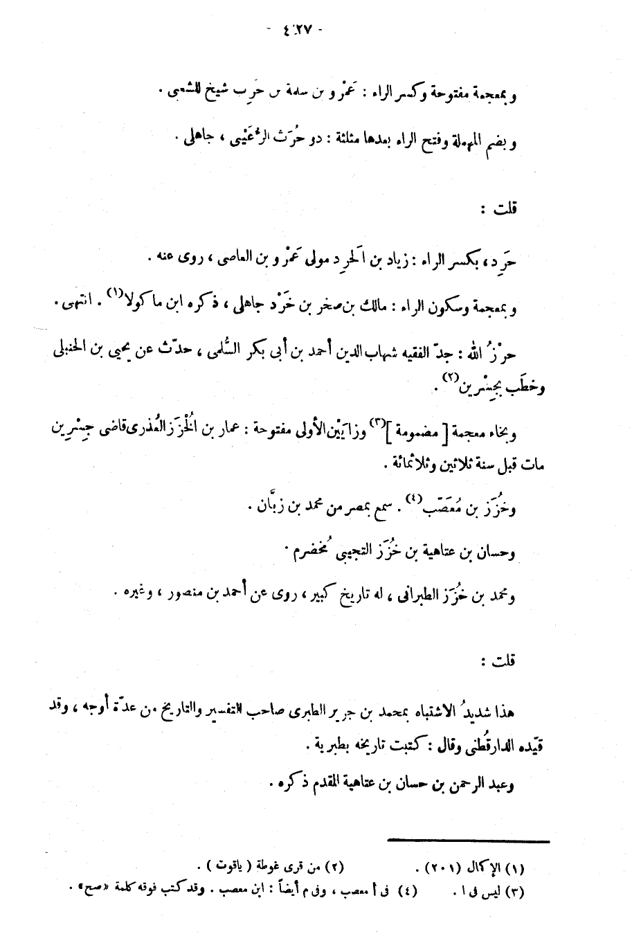 قلت: هذا شديدُ الاشتباه بمحمد بن جرير الطبري صاحب التفسير والتاريخ من عدّة أوجه، وقد قّيده الدارقُطني وقال: كتبت تاريخه بطبرية.