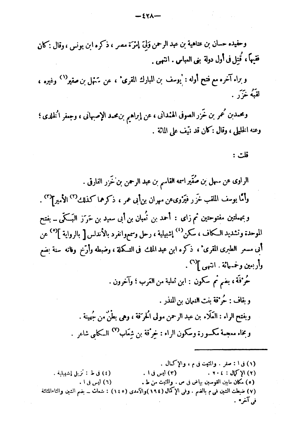 وأمَّا يوسف الملقب خَزر فيَرْوي عن مهران بن أبي عمر، ذكرهما كذلك الأمير.