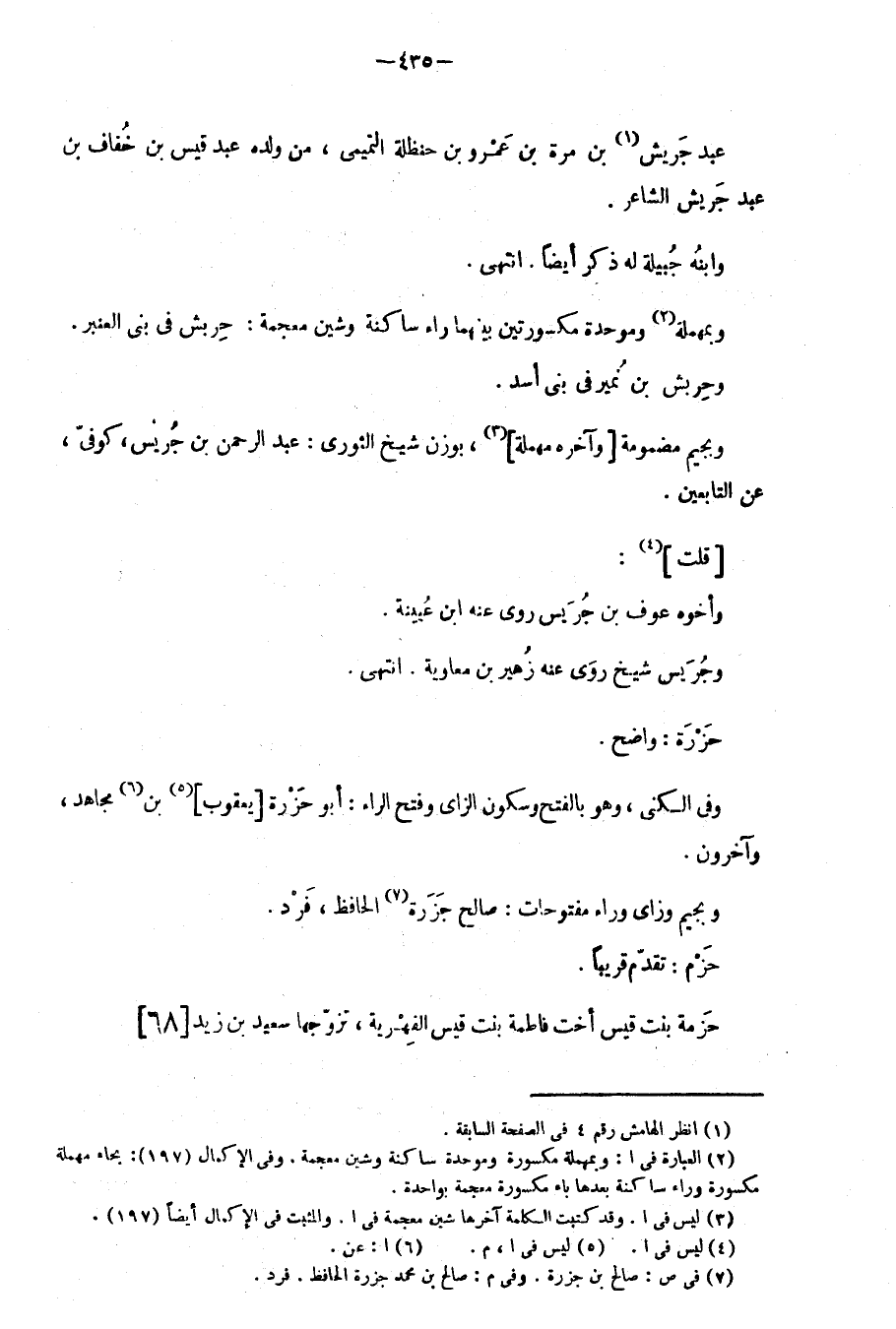 وبجيم مضمومة وآخره مهملة، بوزن شيخ الثوري: عبد الرحمن بن جُريس، كوفيّ، عنا لتابعين.