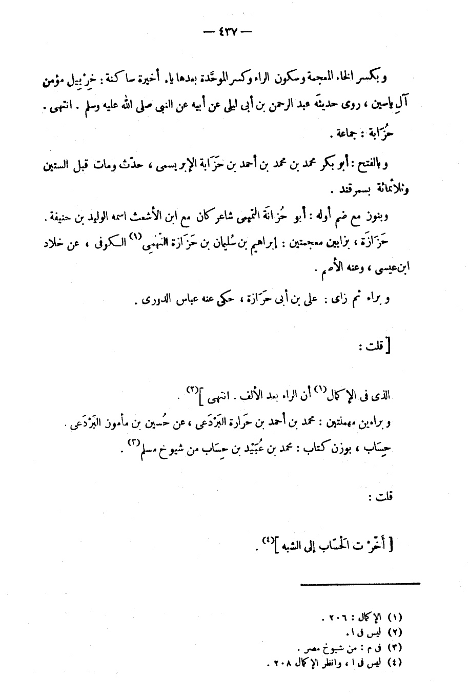 حَزَازَة، بزايين معجمتين: إبراهيم بن سُليمان بن حَزَارزة النَهمِي الكوفي، عن خلاد ابن عيسى، وعنه الأصم.