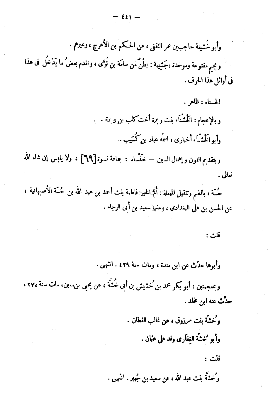 قلت: وخُشَّة بنت عبد الله، عن سعيد بن جٌبير. انتهى.