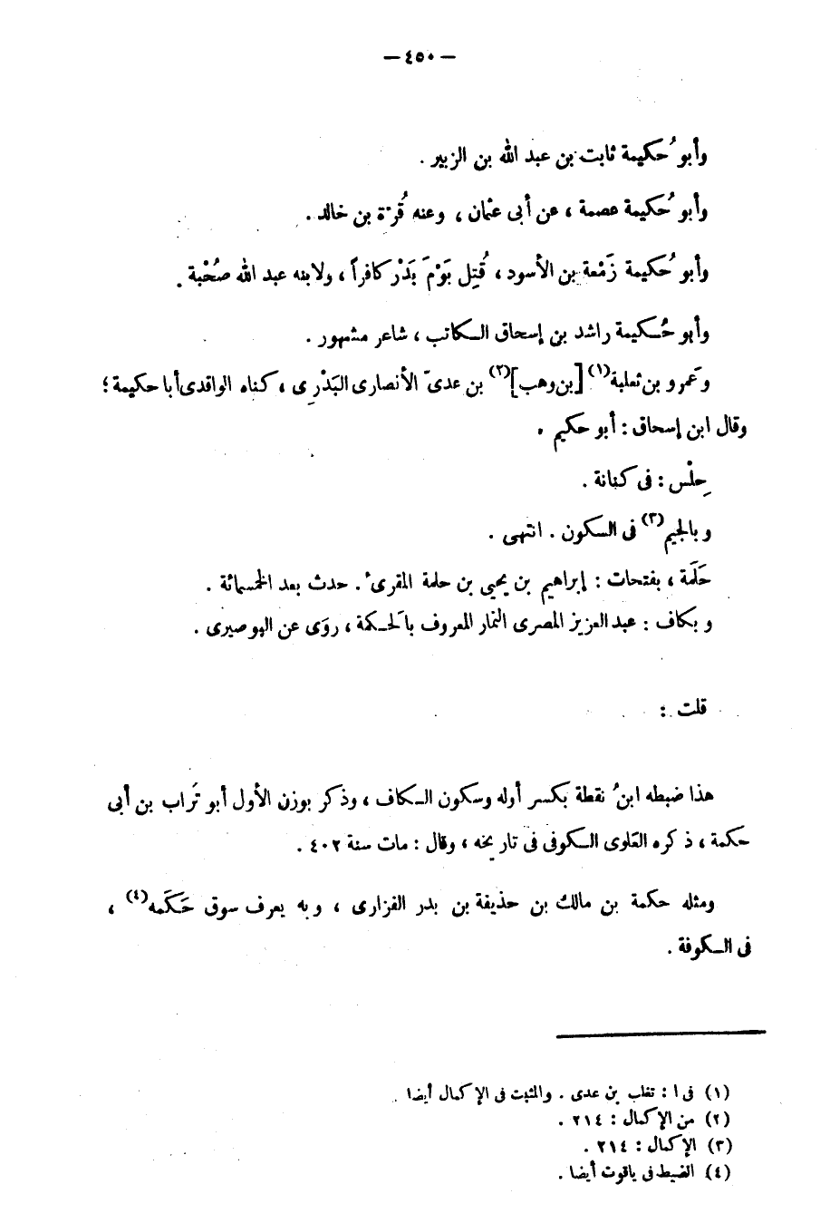 قلت: هذا ضبطه ابنُ نقطة بكسر أوله وسكون الكاف، وذكر بوزن الأول تَراب بن أبي حكمة، ذكره العَلوي الكوفي في تاريخه، وقال: مات سنة 402.