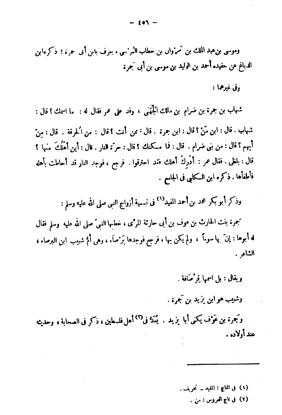 شهاب بن جمرة بن ضرام بن مالك الْجُهَني، وفد على عمر فقال له: ما اسمك? قال: شهاب. قال ابن مَنْ? قال: ابن جمرة. قال: ممن أنت? قال: من الحُرقة. قال: مِنْ أيهم? قال: من بني ضرام. قال: فما مسكنك? قال: حرّة النار. قال: أين أهْلُكَ منها? قال: بلظى. فقال عمر: أدرِكْ أهلك فقد احترقوا. فرجع، فوجد النار قد أحاطت بأهله فأطفأها. ذكره ابن الكلبي في الجامع.