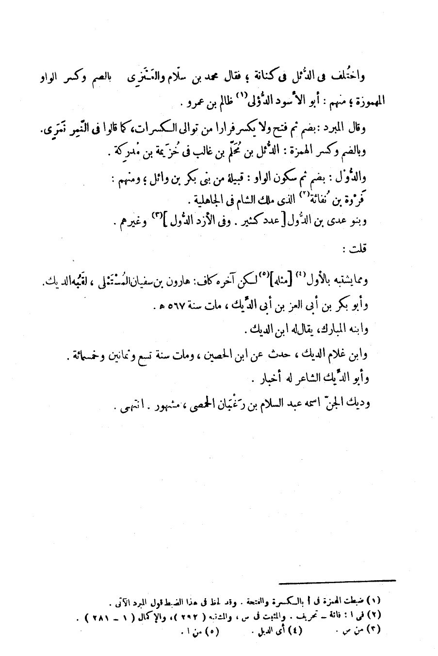 واختلف في الدئل في كنانة؛ فقال محمد بن سلام والعنزي: بالضم وكسر الواو المهموزة؛ منهم: أبو الأسود الدؤلي ظالم بن عمرو.