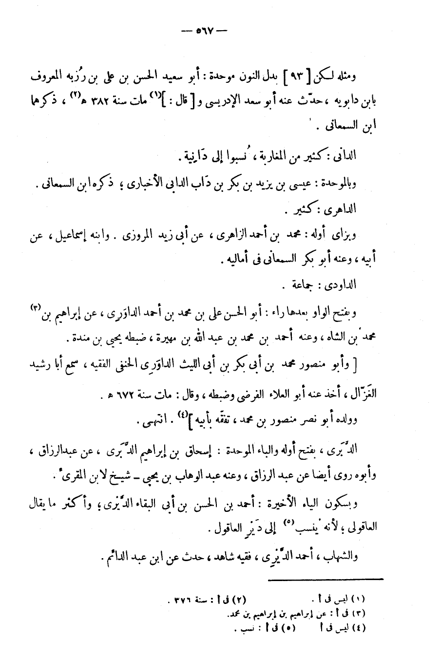 ومثله لكن 93 بدل النون موحدة: أبو سعيد الحسن بن علي بن رزبه المعروف بابن دابويه، حدث عنه أبو سعد الإدريسي وقال: مات سنة 382 هـ، ذكرهما ابن السمعاني.