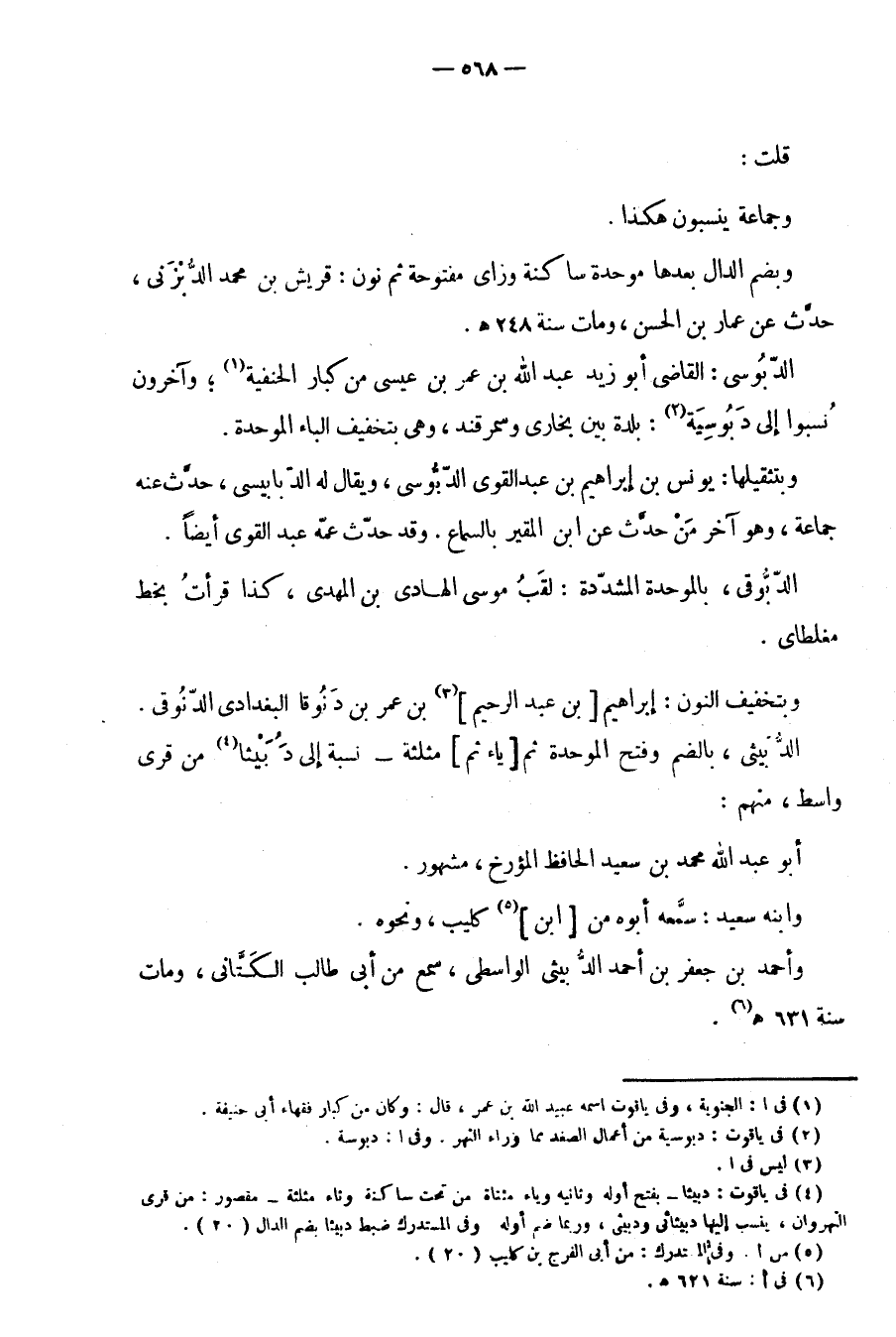 الدبوسي: القاضي أبو زيد عبد الله بن عمر بن عيسى من كبار الحنفية؛ وآخرون نسبوا إلى دبوسية: بلدة بين بخارى وسمرقند، وهي بتخفيف الباء الموحدة.