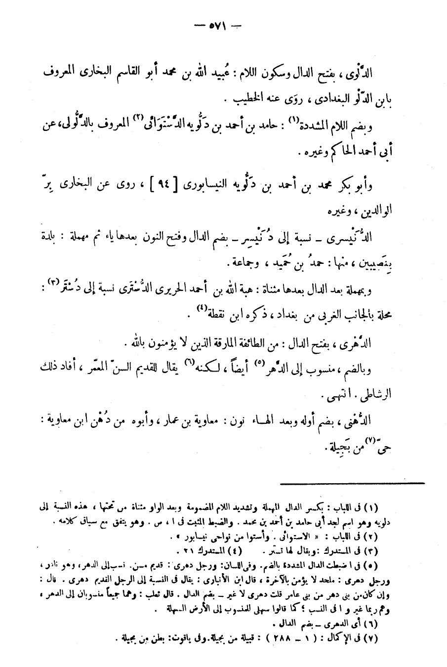 وبمهملة بعد الدال بعدها مثناة: هبة الله بن أحمد الحريري الدستري نسبة إلى دستر: محلة بالجانب الغربي من بغداد، ذكره ابن نقطة.
