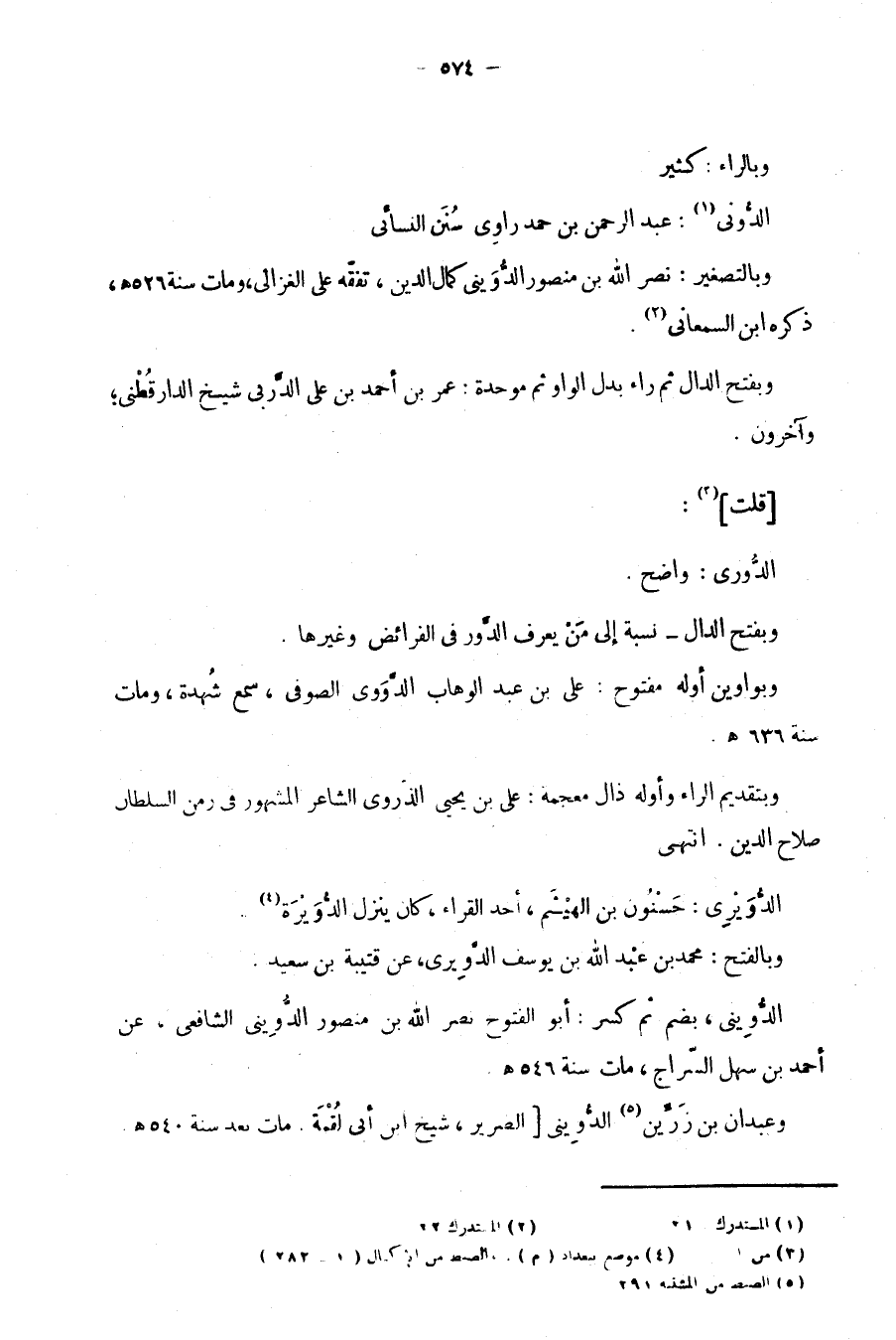 الدويني، بضم ثم كسر: أبو الفتوح نصر الله بن منصور الدويني الشافعي، عن أحمد بن سهل السراج، مات سنة546 هـ.