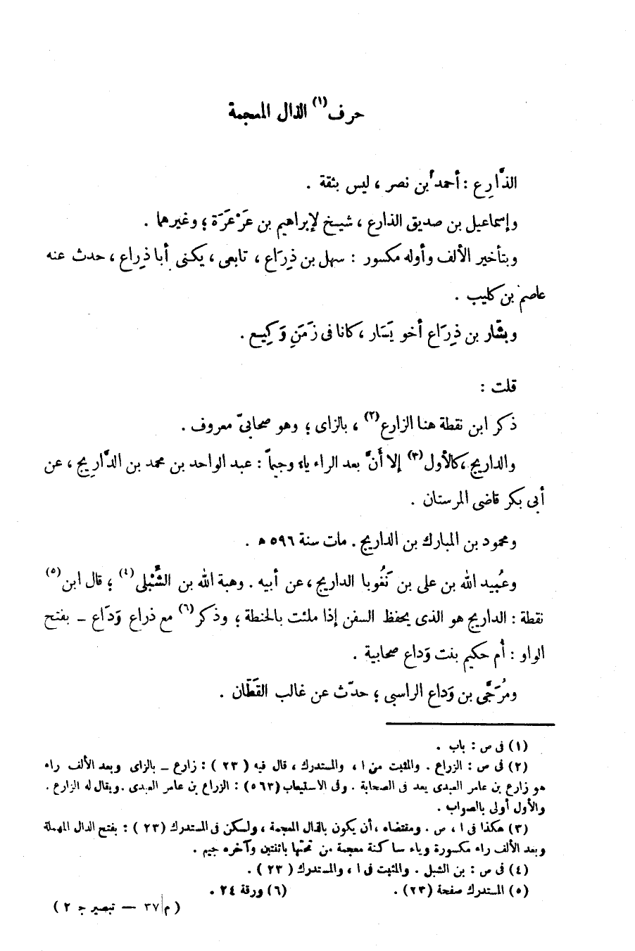 قلت: ذكر ابن نقطة هنا الزارع، بالزاي؛ وهو صحابي معروف.
