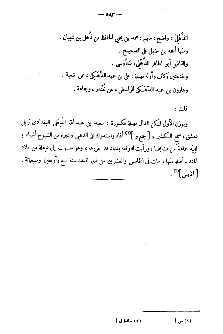 قلت: وبوزن الأول لكن الدال مهملة مكسورة: سعيد بن عبد الله الدهلي البغدادي نزيل دمشق، سمع الكثير وجمع وأفاد واستدرك على الذهبي وغيره من الشيوخ أشياء؛ لقيه جماعة من مشايخنا، ورأيت له وقعة بغداد قد حررها؛ وهو منسوب إلى دهلة من بلاد الهند، أصله منها، ومات في الخامس والعشرين من ذي القعدة سنة تسع وأربعين وسبعمِئَة. انتهى.